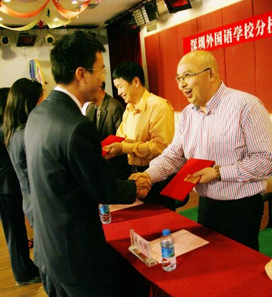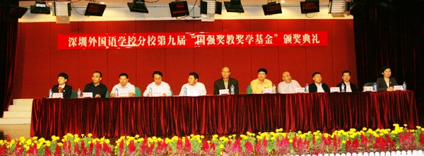 为了鼓励广大教师爱岗敬业、不断学习和创新,也为了激发同学们的学习热情,校投资方李朗业兴实业有限公司董事长凌国强先生捐资建立了“国强奖教奖学基金会”。11月30日下午,我校在六楼礼堂隆重举行了第九届奖教奖学金颁奖典礼,为在2010-2011学年中表现优秀并取得了成绩的老师和同学们颁奖。李朗业兴实业有限公司两位凌董事长、深圳外国语学校校级领导和区教育局、布吉教办领导出席了本次颁奖典礼。。