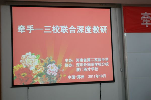 2011年10月6日~8日,我校初一、初二年级共70名老师牺牲自己的国庆假期,与河南省第二实验中学、厦门英才学校的老师们“牵手”,进行三校联合深度教研与工作研讨会。研讨会内容丰富,老师们探讨深入,受益匪浅。