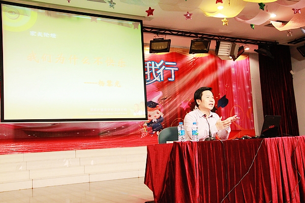 为了帮助家长给孩子营造一个轻松、快乐的学习环境,以平和的心态面对生活,6月26日晚,我校特别邀请了国家一级作家、高级记者、中国报告文学学会副会长、深圳市记者协会主席、深圳晚报总编辑杨黎光老师为家长们作了一场题为《我们为什么不快乐》的精彩讲座。