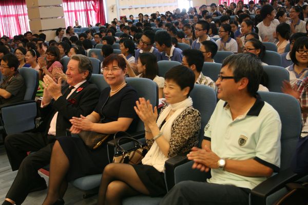 演讲中,Mr. Weatherley生动地阐述了表演是对原剧本的再次创作。他的多次示范,妙趣横生,笑声掌声不断。师生们在Mr. Weatherley绘声绘色的演讲中领略了他深厚的表演功底和极富魅力的个性特点,加深了对表演内涵的理解。会后他还亲切地应学生们要求签名,耐心地回答每一个问题。我校师生对Mr. Weatherley的到来期盼已久,都非常珍惜这次难得的学习机会。整场演讲活动气氛活跃、互动开放,持续约一个半小时。