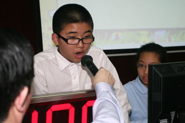 由陈文宇老师和刘艳老师担任主持人,两位金牌主持台风稳重、端庄、干练,两位老师配合默契,妙语连珠,将会场气氛调动得热烈、紧张而有序。整场竞赛学生热情高涨,时而为台上选手呐喊加油,时而积极思考踊跃参与观众抢答。通过竞赛,同学们既学到了科普知识,又培养了集体荣誉感。