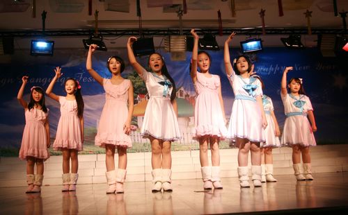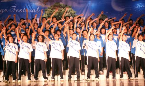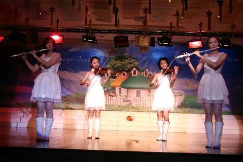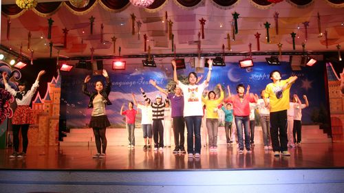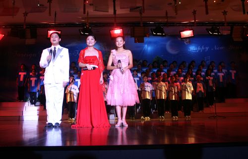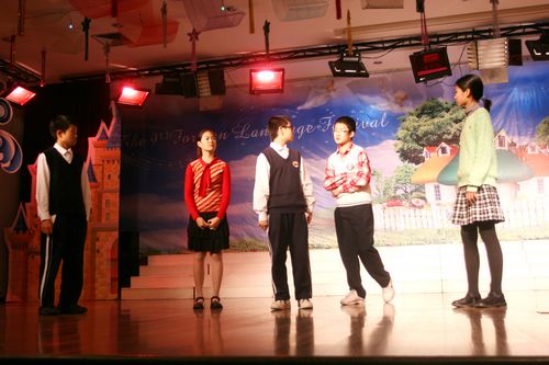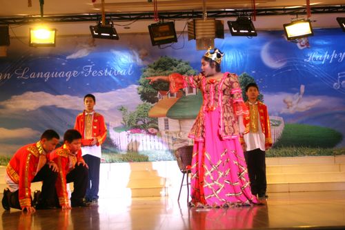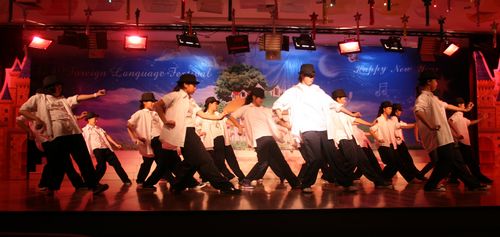 为了营造良好的英语氛围,给学生一个展示英语能力的平台,我校自创校起每年将圣诞节前一个星期左右的时间定为学校外语节,期间将举办各种丰富多彩的活动来展现学生的英语能力和艺术才能,外语节闭幕式文艺演出即为其中之一。此次演出是学生们在各自英语老师和艺术组老师的带领下自编自排,耗时将近一个月的时间,经过联排、彩排,精选而出的。