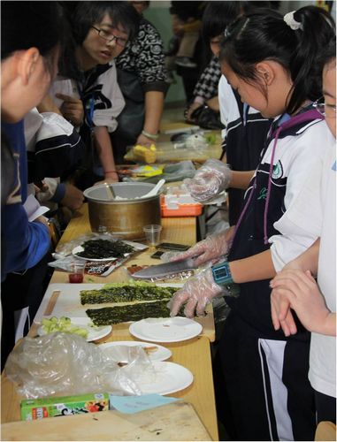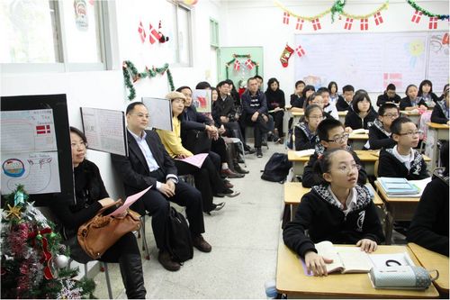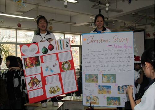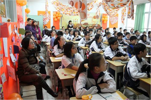 当天早上在分校校园的每个角落,人山人海,喜气洋洋。在教学区,在操场,在宿舍区到处都洋溢着欢乐的气氛。三节开放课之后每个班举办了隆重的外国文化博览活动。初一年级是各个国家的文化博览,有美国,英国,法国,丹麦等等。每个班级都向各位来宾呈现了关于这个国家的文化、历史、建筑、人物、食品等丰富的精神大餐。初二年级是各个节日的文化博览,有愚人节、圣诞节、感恩节、母亲节、复活节、情人节等等。他们向来宾诠释着这些节日的深刻内涵。