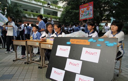 此次活动,初一的同学们模拟开设了日常生活中不同种类的商店,利用实物创设真实交谈场景,锻炼在不同场合利用英语进行沟通交流的能力。在活动,每一位学生都热情高涨,兴趣盎然,他们在活动中既检验了自己的英语表达能力,又培养了合作意识,锻炼了组织、协调能力,能让学生在快乐中说英语。活动使每位同学都受益匪浅。(伍云霞)