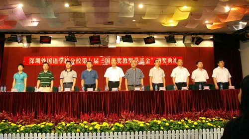 10月15日下午,学校在六楼礼堂举行了第八届“国强奖教奖学基金”颁奖典礼。李朗业兴实业有限公司董事长凌国强先生、深圳外国语学校校级领导和区教育局、布吉教办领导出席典礼。整个颁奖过程,不时爆发出热烈的掌声,自始至终洋溢着祥和、喜庆的气氛。