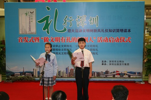 9月29日下午,由市文明办筹划的《礼行深圳——迎大运讲文明树新风礼仪知识简明读本》首发式暨“做文明有礼的深圳人”的启动仪式在深圳中心书城拉开序幕。