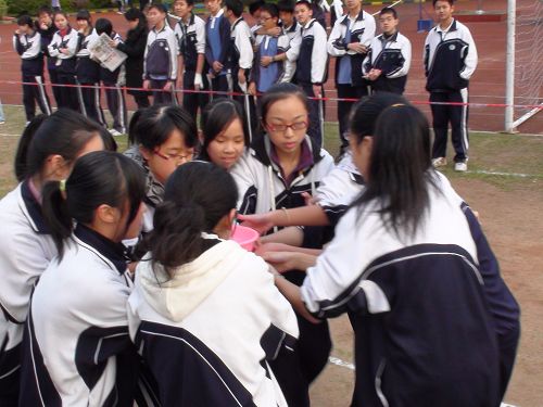 为了丰富校园课余生活,促进学生身心健康与和谐发展,同时培养学生团体合作,参与竞争的意识,在3月11日下午5点,同学们在班主任的带领下展开了“蚂蚁运水”的趣味体育竞赛活动。