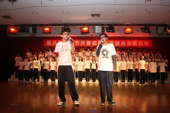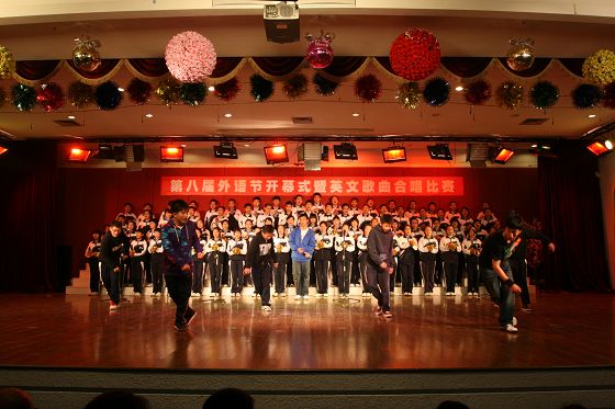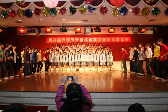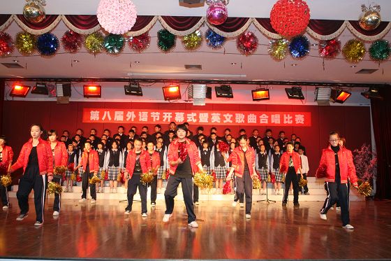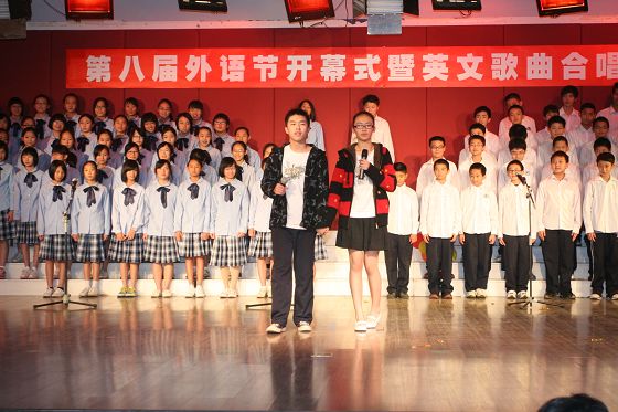 唱歌学外语,是我校外语教学的一大特色。合唱比赛,为同学们提供了一个展示外语演唱才能的舞台。同时,这样的集体活动,大大增强了班级凝聚力和同学们的集体荣誉感。