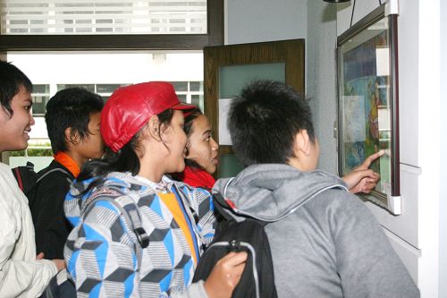 海外学子在艺术中心交流艺术作品