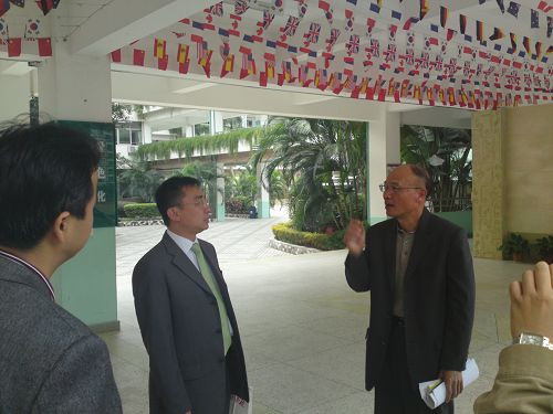 在朱副校长的陪同下,客人们参观了我校的校史展览室、静思园、释心室、图书馆、外语活动中心、艺术中心等功能室。客人对我校温馨的校园文化、丰硕的教学成果、良好的教学设施给予了高度评价。宾主双方还相互介绍了各自的办学情况、秉承的办学理念,并表示将进一步深化合作,加强交往,增进友谊。(高同勇)