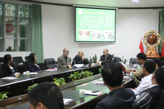 龚校长和朱校长在向各位领导介绍我校的办学情况