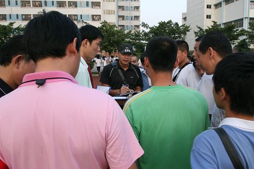 人头涌动,裁判员在核对成绩
