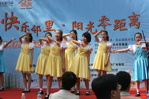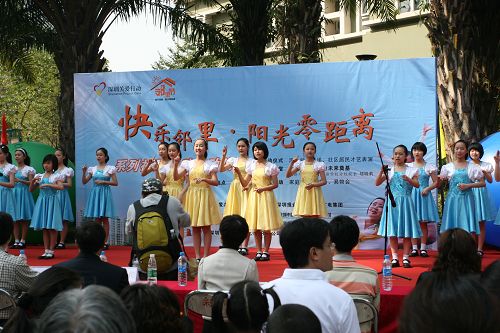 3月15日下午,深圳关爱行动第三届邻里节之“快乐邻里·阳光零距离”启动仪式在福田区彩田村举行。我校合唱团一曲舒缓动人的《把爱传下去》感染着现场每一个人,也拉开了活动的序幕。