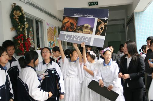 此次外国文化博览,在筹备之初外语组就明确提出了年级主题:初一展示各国特色文化;初二展示世界各地节日文化。经过师生前期的充分准备,各班教室布置新颖醒目、彰显特色;学生接待热情礼貌,解说准确耐心。为了吸引参观者,学生们动足了脑筋:有的穿上民族服装举着欢迎牌高声招呼;有的摆出精美小吃免费品尝;有的留出舞台表演特色舞蹈;有的安排游戏现场竞答。但无论何种形式的活动,外语始终是相互交流的共同语言。