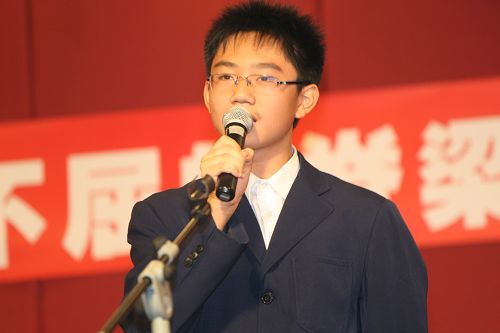 活动一直在庄重、严肃的气氛中进行着。最后,通过近两个小时的激烈角逐,初一(9)班推选的谭傲、肖笛同学组合以及初二(8)班的王烨蓝同学分别摘得了本年级的桂冠。(刘飞龙)