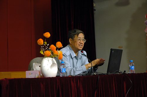 本周二晚,在深圳读书月论坛中讲授“神舟五号与航空航天国防”的胡思远教授来我校为初二学生作了一场科普报告。