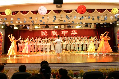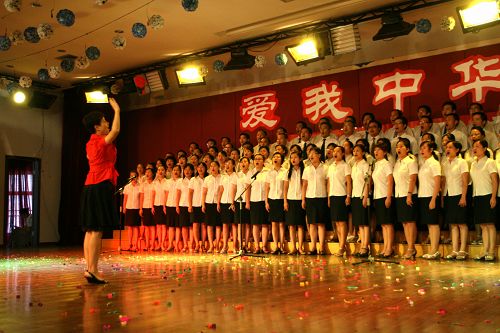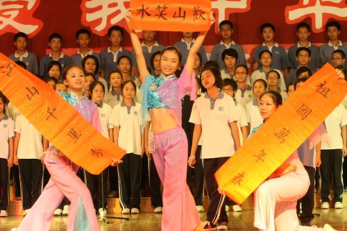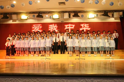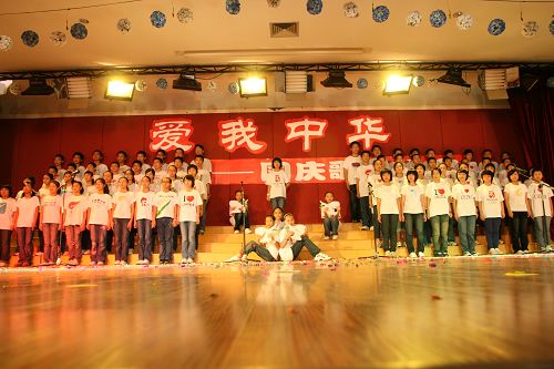 2008年9月28日下午,我校六楼礼堂成了歌声的海洋,成了欢乐的海洋。为了庆祝祖国母亲59岁生日,迎国庆系列活动之“爱我中华”歌咏比赛在这里隆重举行。各班在时间紧、任务重的困难条件下,为大家奉献一台精彩的视觉、听觉盛宴的同时,师生爱国激情得到进一步激发,为我校“爱国、求知”的校训作出了最好诠释。