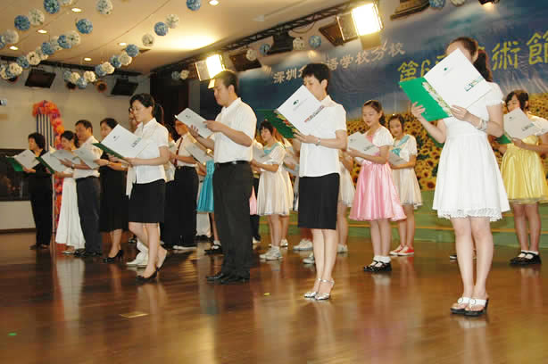 5月31日,是深圳外国语学校分校的校园开放日,也是分校第6届艺术节闭幕式的日子。在六楼演艺厅,400多位家长和初一年级的400多名学生济济一堂,一起观看了分校第六届艺术节闭幕式文艺演出,十三个精彩的节目再次展现了我校师生的艺术风采,给家长们以在强烈的视觉和心灵震撼,整个会场气氛热烈而隆重。