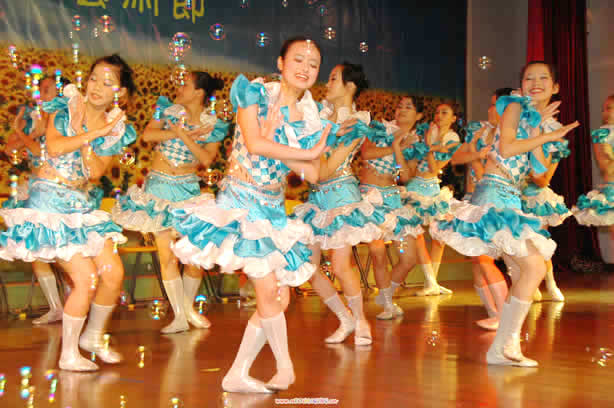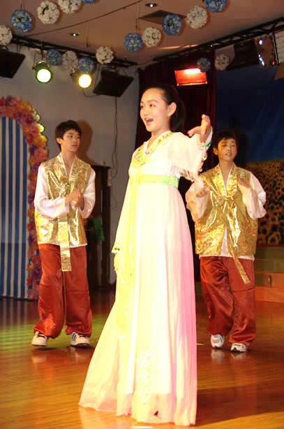 由刘飞龙和黄玉老师表演的教师演唱《载歌载舞》,将节目推向了高潮,最后,舒展的校旗将节目《校园晨曲》定格在欢快的校歌声中,深外分校又踏上了新的征程。