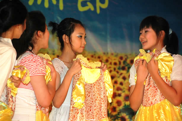 本届艺术节还引进了读剧这种高雅的艺术形式。由深圳戏剧家协会副主席大艺术家李绍琴老师指导排演的读剧《渡口》,生动的演绎了在人生的渡口,丢掉了“诚信”,就立刻丧失了“美貌”“金钱”“爱情”等等优良的品质。一个没有诚信的人,“大江爷爷”也无法摆渡其人生。节目引起了同学们的深刻思考,使他们的心灵受到了强烈的震撼,也使家长们对孩子在深外分校快乐、充实、健康的成长充满了信心,学校的艺术氛围和孩子们艺术般的生活使他们深受感动。