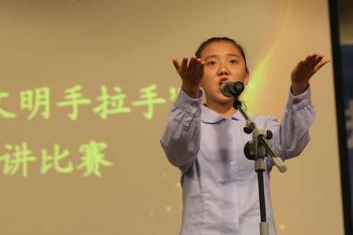 历时一个多小时的比赛,共有来自初一初二19个班级的19名选手参赛,他们围绕“文明”主题,用演讲的方式阐述了他们对文明的认识与理解。整个演讲过程中,选手们或从身边的行为细节入手,或从身外的社会现象着眼,或振臂疾呼,或娓娓道来,激情洋溢的阐明了文明与个人素质的关系;文明与人生价值的关系;文明与奥运的关系;文明与国家未来、民族振兴的关系等等。演讲者娴熟的演讲技巧,演讲词中翔实的论据和严密的逻辑论证过程赢得了同学们的阵阵掌声,受到了评委老师们的称赞,对选手忘词现象的鼓励掌声更是凸显了台下观众的文明素质。