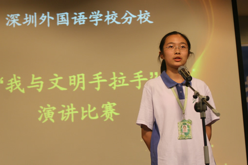 5月4日是青年节,晚19:00,在深外分校六楼演艺厅里,初一初二的同学济济一堂,参加了学生处组织的“文明礼仪活动月”系列活动之“我与文明手拉手演讲比赛”,经受了又一次文明礼仪的洗礼。