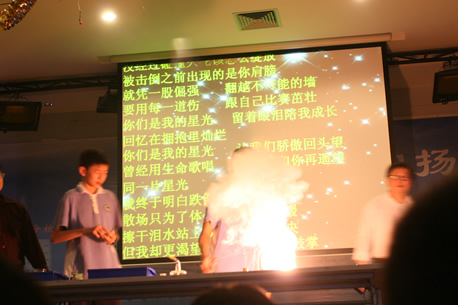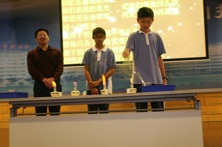 一场让师生激动、惊奇的魔幻实验表演为第六届科技节画上了一个圆满的句号!科学老师唐杜鑫、朱文庆带领两位同学在六楼礼堂,用奇妙的化学实验告诉同学们自然科学奥妙无穷,人类探知没有止境。