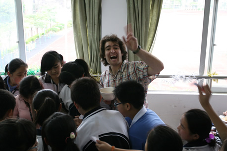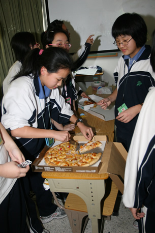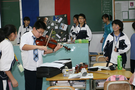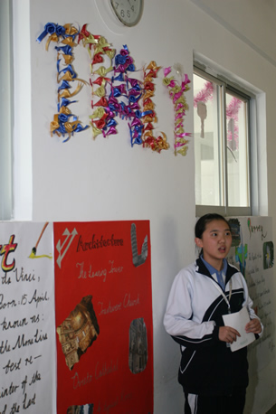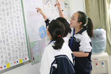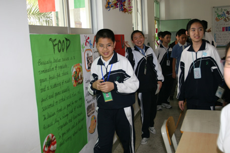 3月27日下午,分校第六届科技节系列活动之——外国科技文化博览在初一、初二年级各班教室举行。同学们在教室精心装饰了墙报、道具,准备了代表各国风情与主题文化的食品、特产、民族服饰及各种人物造型,热情迎接一批批“客人”的参观,并用英文的向来宾们一一介绍。