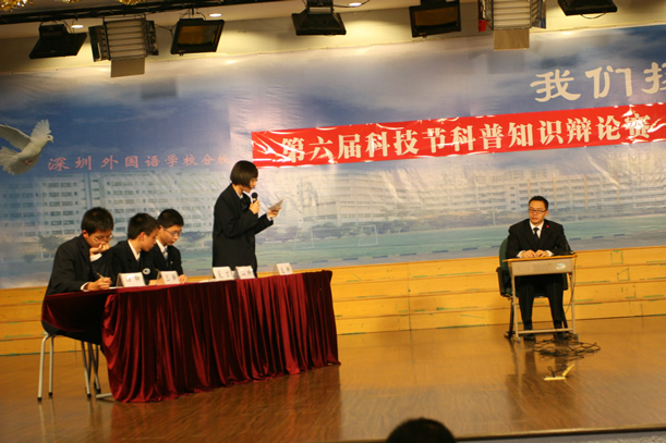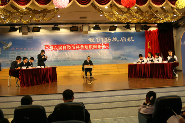 3月24日下午,初二年级在六楼礼堂,以一场科普知识辩论赛拉开深外分校第六届科技节的序幕。初二年级四个代表队,就“网络是使人们更亲近还是更疏远”,“人类将毁于科技吗”两个辩题,展开了激烈的辩论。辩论赛激发了同学们对科学知识的兴趣,培养了团结协作意识。