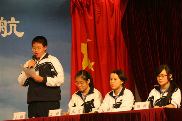 首先上场的是初二(4)、(6)班代表队与初(1)、(2)代表队,正方重点强调网络在人际交往方面的方便与快捷,缩短了人们之间的时空距离,因而使人们之间的关系更亲近。反方则重点强调网络的虚拟性与隐蔽性,削弱了人与人交往的基础——诚信,因而使人们的关系更疏远。因为是初次进行正式辩论,选手们表现得不够镇定从容,在临场发挥,主动攻辩方面显得不足。