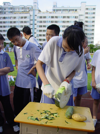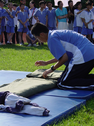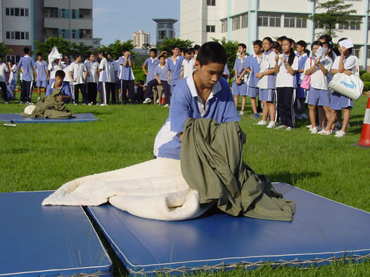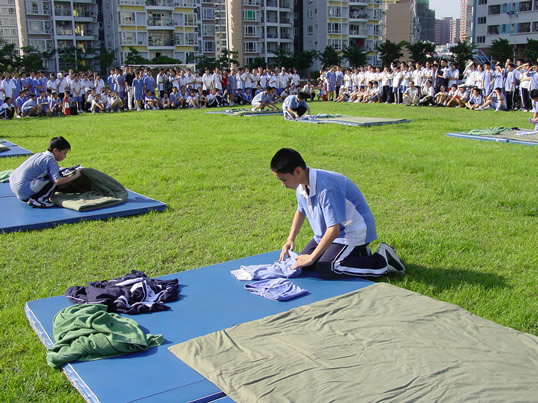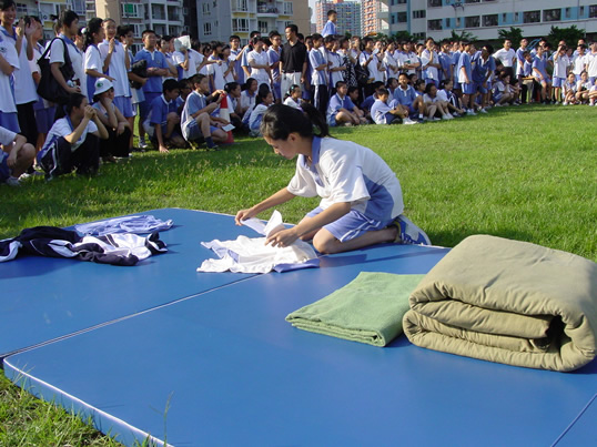6月20日下午,在操场上举行了我校首届生活技能比赛。初一、初二年级各班选出男女生代表选手各1名,比赛分为五轮。比赛过程中,各班同学热烈地为本班选手加油,选手们也不负同学们的期望,使出浑身解数快速而又细心的将一件件被单与衣服叠得整整齐齐。