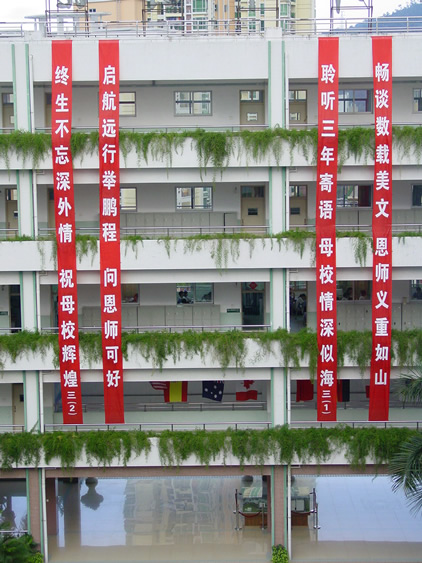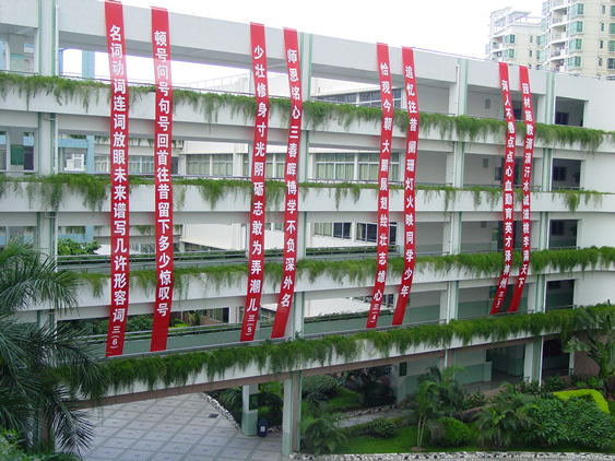 6月19日,在我校教学楼内,16条鲜亮的条幅在阳光下迎风轻舞。这是初三同学为母校送上的一份心意。在离别之即,他们用自己最真心的话语表达出最真实的情感——对母校的怀念、对校长妈妈的感激、对恩师的感谢、对同学的不舍,以及对自己今后人生的鼓励。