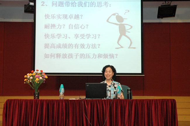 “开心妈妈”屈开教授来到了我校为家长们作报告