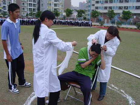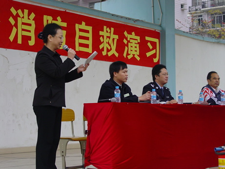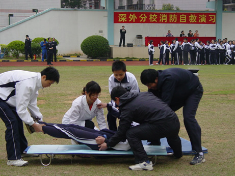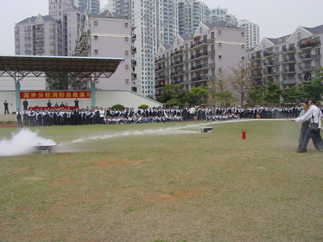 3月6日,作为安全教育周系列活动之一的消防自救演习如期进行。演习分全校师生紧急疏散、简易灭火演示、高压水枪操作、现场急救伤员等环节。龙岗区消防大队布吉中队的领导现场观摩了整个演习的过程,并对演习的科学、有序组织给予了很高的评价。消防中队的领导还希望,要以此来推进学校的安全教育与安全管理。最后,学校学生处的姜萍主任代表学校感谢了本次参演的所有人员,也就本次演习作了总结。