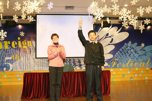 邬校长给初三年级“快乐使者”梅兰芳老师颁奖