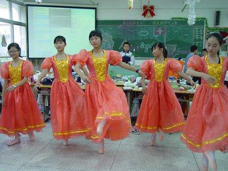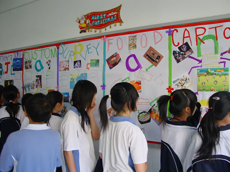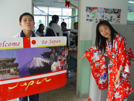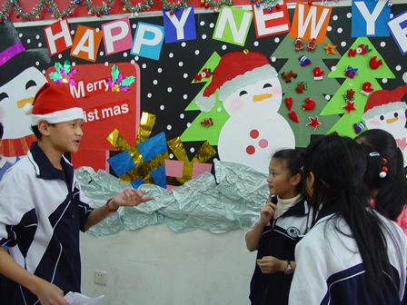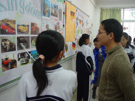 12月27日下午,分校第五届外语节系列活动之——外国文化博览在初一、初二年级各班教室举行。初一年级的主题是各国风情介绍,初二年级的主题是世界文化博览,同学们在教室精心装饰了墙报、道具,准备了代表各国风情与主题文化的食品、特产、民族服饰及各种人物造型,热情迎接一批批“客人”的参观,并用英语的向来宾们一一介绍。