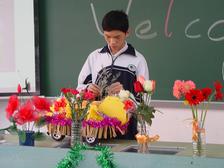 Flower Store of Class 1 Junior 2 正在精心装饰遥控“花车”