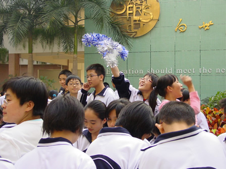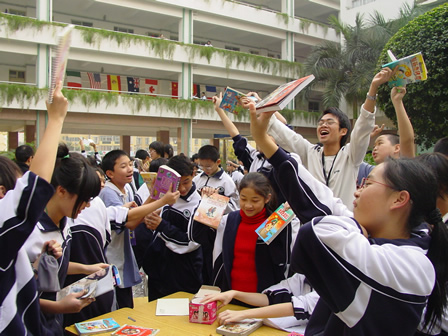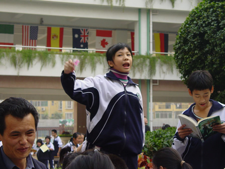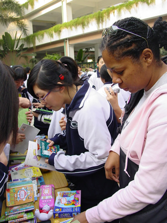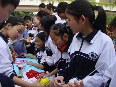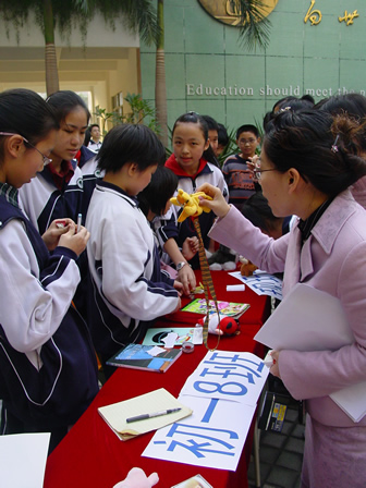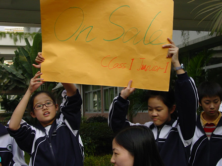 11月26日下午,分校校园一遍欢快愉悦的景象,初一、初二年级的同学们正在进行着外语跳蚤市场爱心义卖活动。各个班的摊位上摆满了同学们带来的各式各样的“货品”,有书籍、玩具、日用品等等,大家热烈地利用英语讨价还价,在买卖的过程中愉快的练习了日常英语的使用。通过这样的爱心义卖活动,同学们即在活动中练习了日常英语口语的运用,又是一次很好的德育教育活动,所筹得的款项将由学校集中捐赠给慈善机构。