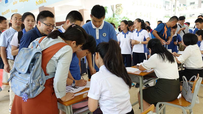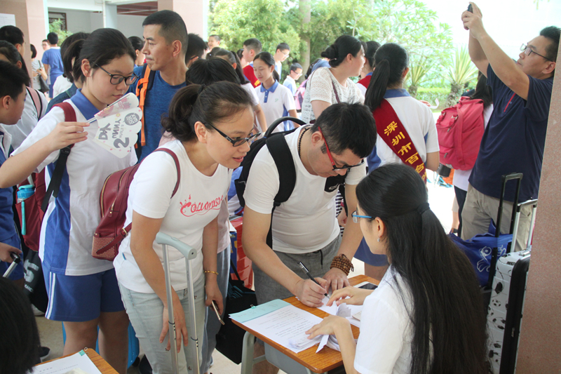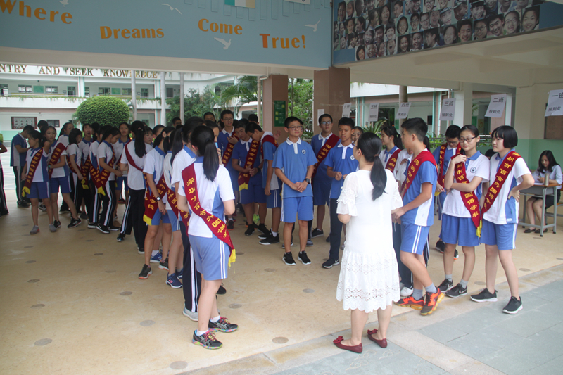 学生处赵若兰副主任在前一天的迎新准备会中,详尽地说明了相关工作安排,初二年级近80多名迎新学生志愿者面带微笑,热情地为学弟学妹和家长们解疑答惑,指引路线。各班精简快捷的报到流程,热情周到的服务,不仅使新生报到快捷顺畅,更消除了新生初来乍到的陌生感,让新生和家长对这一所温暖的学校有了更进一步的认识和感受。