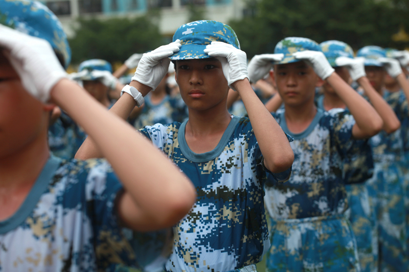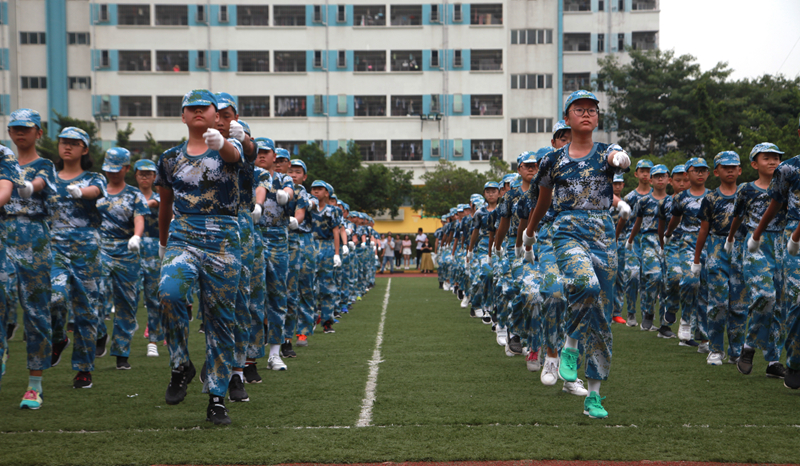 9月7日,下午16:00,百外操场上,集结了全体18级军训的学生,孩子们个个精神抖擞,汗水划过他们黝黑而仍略带稚嫩的脸蛋儿,他们目光坚定,站姿挺拔,这是五天来日夜严格训练的成果,这是顽强意志的最好体现。