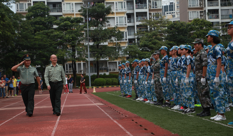 首先是阅兵式,总教官陪同校长从一班至十二班的队列前方走过,检阅队列,“同学们好!”“校长好!”“同学们辛苦了!”“为学校争光!”声声铿锵有力,字字掷地有声。