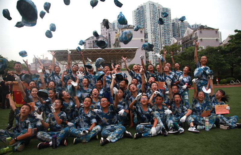 结营仪式在家长们的热烈掌声中,在全体初一老师的注视中,在教官清晰有力的口号声中开始了。