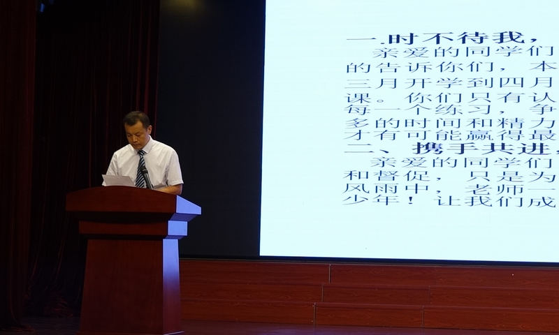 大会最后,朱校长进行了总结。他肯定了初三老师的工作,赞美老师们不论教了多少届初三,都保留着教第一届初三的激情,难能可贵。朱校长也鼓励孩子们要相信老师,要相信自己,要有有远大的目标和必胜的信心,希望同学们在学习中能总结出适合自己的学习方法,在竞争中挑战自己,突破自己,成就自己!
